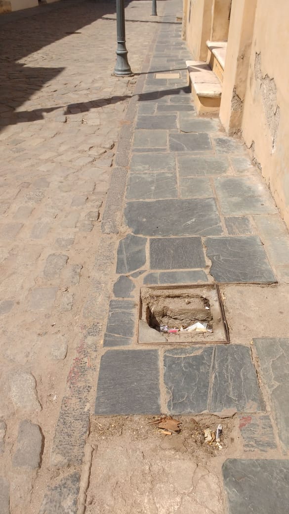 • Caja de medidor sin tapa en entrada de jardín de infantes.