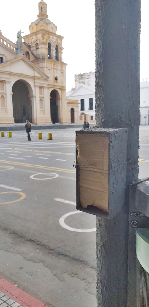• Cables expuestos de alumbrado público en cantero de peatonal. Peligro denunciad...