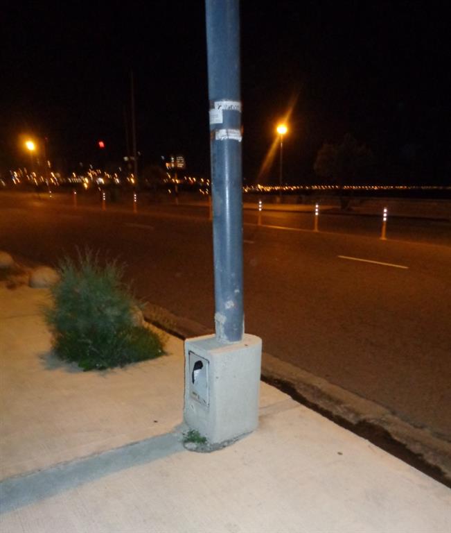• Tapa de poste de alumbrado pública abierta. Riesgo potenciado porque es una pla...